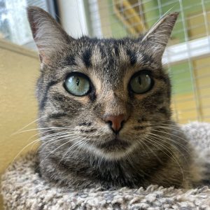 Meet Keke — your future tabby queen! This 2-year-old medium-haired beauty has bright green eyes, a soft coat, and a flair for being fabulous. She loves chasing feather toys, swatting ribbons through boxes, and stretching in warm sunbeams while bird-watching. Keke gets along with other cats but prefers her space — royalty has standards! She’s a sweetheart, and is spayed, vaccinated, microchipped, and ready to rule your heart. Call 479-394-5682.
