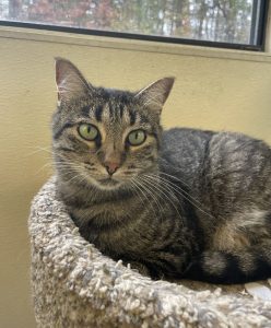 Meet Keke — your future tabby queen! This 2-year-old medium-haired beauty has bright green eyes, a soft coat, and a flair for being fabulous. She loves chasing feather toys, swatting ribbons through boxes, and stretching in warm sunbeams while bird-watching. Keke gets along with other cats but prefers her space — royalty has standards! She’s a sweetheart, and is spayed, vaccinated, microchipped, and ready to rule your heart. Call 479-394-5682.